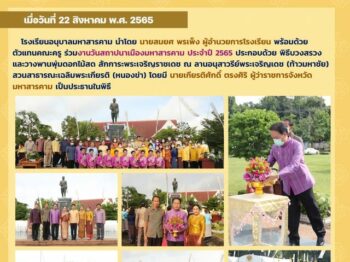 อนุบาลกระดานข่าวปีที่ 5 ฉบับที่ 100/2565 งานวันสถาปนาเมืองมหาสารคาม ประจำปี 2565 ประกอบด้วย พิธีบวงสรวงและวางพานพุ่มดอกไม้สด สักการะพระเจริญราชเดช ณ ลานอนุสาวรีย์พระเจริญเดช (ท้าวมหาชัย) 22 ส.ค. 25653 ก.ย. 2022schoolอนุบาลกระดานข่าว