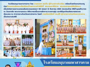 อนุบาลกระดานข่าวปีที่ 5 ฉบับที่ 94/2565 กิจกรรมเฉลิมพระเกียรติสมเด็จพระนางเจ้าสิริกิติ์ พระบรมราชินีนาถ พระบรมราชชนนีพันปีหลวง เนื่องในโอกาสมหามงคลเฉลิมพระชนมพรรษา 90 พรรษา 12 สิงหาคม 2565 ประกอบด้วย พิธีทำบุญตักบาตร ณ วัดมหาชัย พระอารามหลวง พิธีถวายเครื่องราชสักการวางพานพุ่ม และพิธีจุดเทียนชัยถวายพระพรชัยมงคล 13 ส.ค. 256516 ส.ค. 2022schoolอนุบาลกระดานข่าว